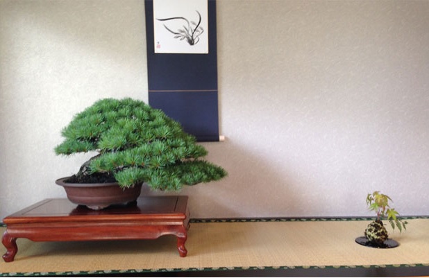 - 床の間の盆栽を見ながら食事